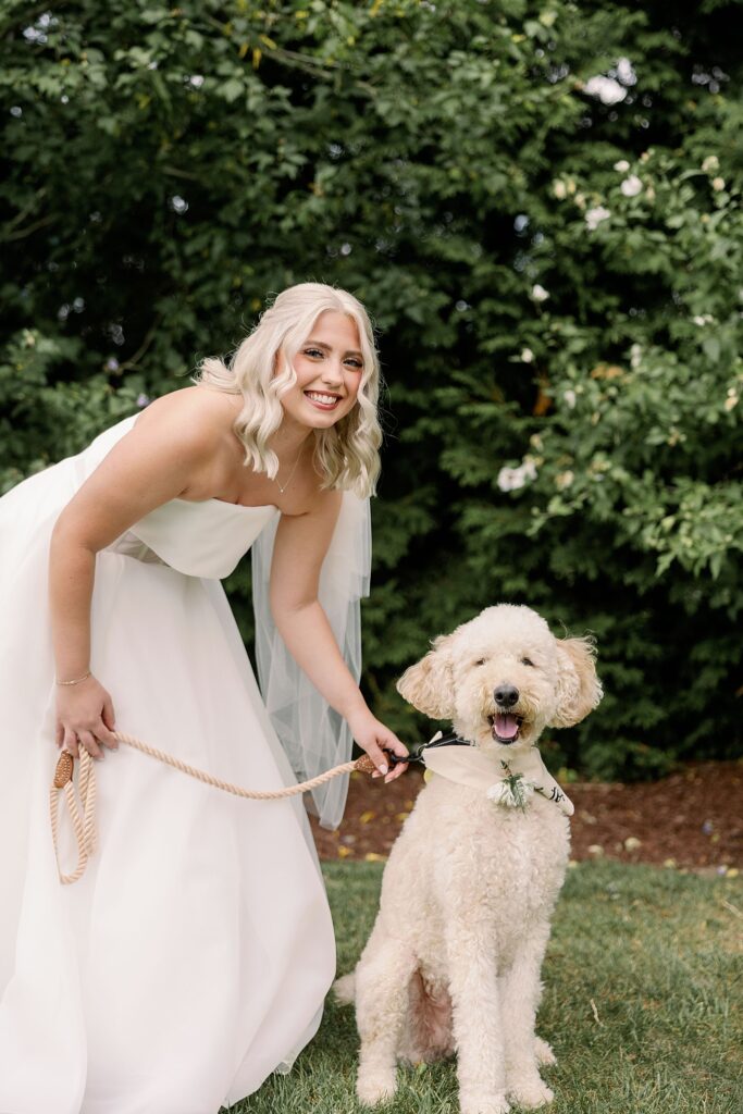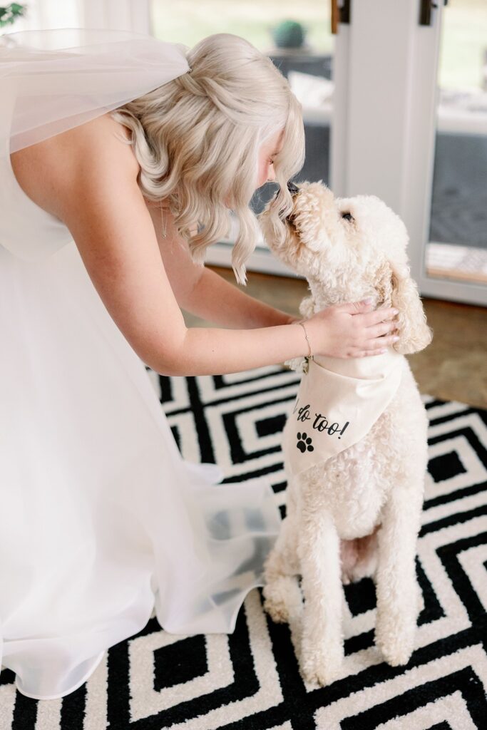 Ally began her morning at her parents’ home — a space filled with warmth, love, and their adorable goldendoodle, Millie, who truly believed she was part of the bridal party. 🐾 Between cuddles and laughter, Makeup Artist Ellie Dundics (@glam_byellie) created Ally’s timeless, natural look that perfectly complemented her Anthropologie wedding gown.