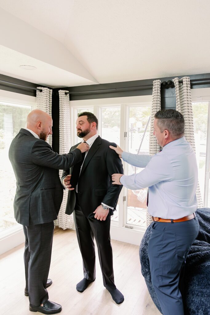 Sal got ready down the street at his and Ally’s home surrounded by his closest guy friends. Once they were ready and the game came to a good stopping point they were off! Or so we thought. Ally had a motion alert from a camera that the limo had to turn around for something (oops!)