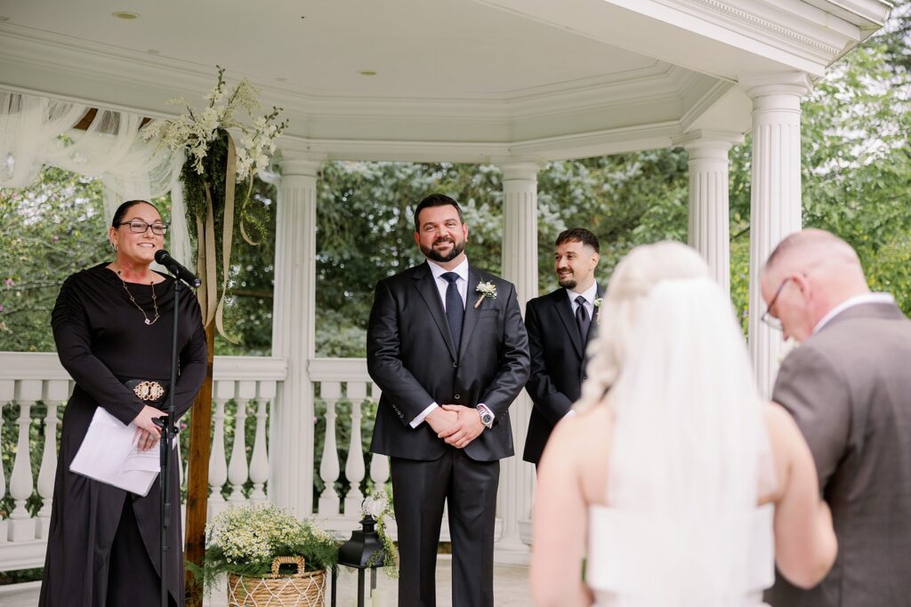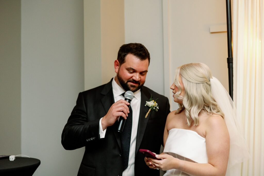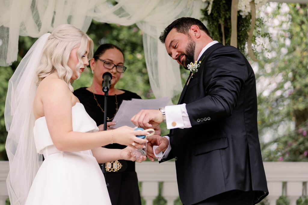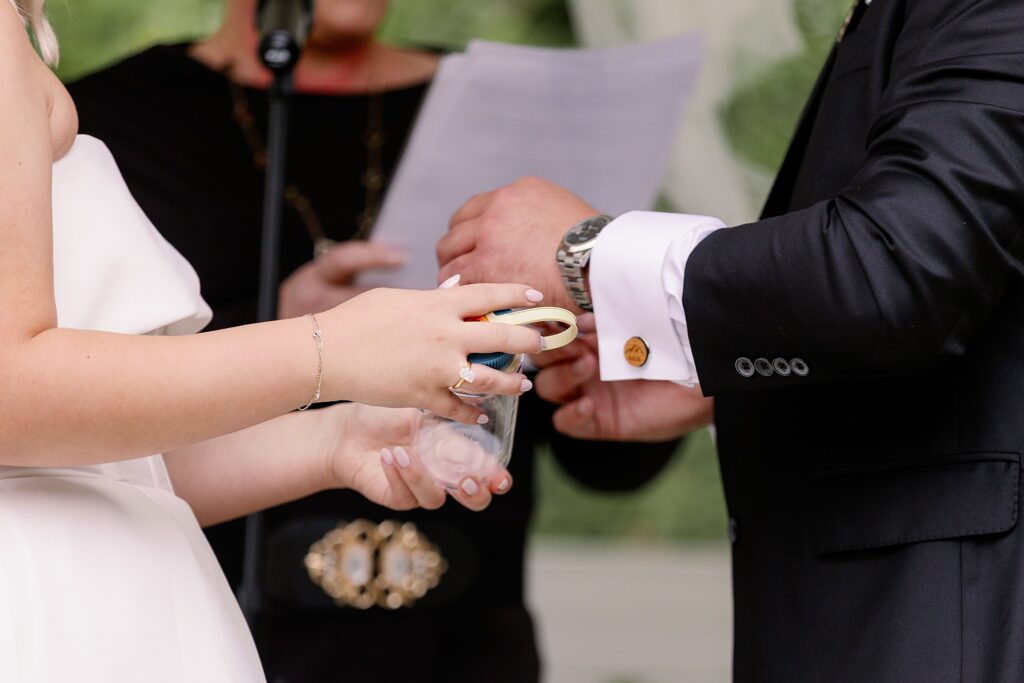 Their officiant included a unique unity moment with a personalized water bottle sticker — a symbolic twist that reflected their personality beautifully.