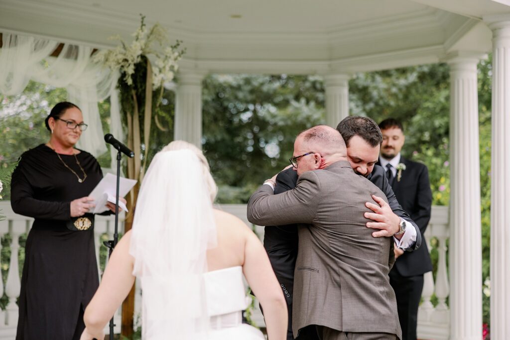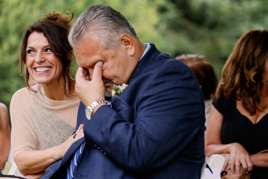 The ceremony at Avalon at Squaw Creek was nothing short of breathtaking. The weather was perfect — golden sunshine, no rain, and a gentle September breeze. As Ally walked down the aisle with her dad, Sal’s emotions overflowed. His brother handed him a tissue just as everyone realized someone special was missing…