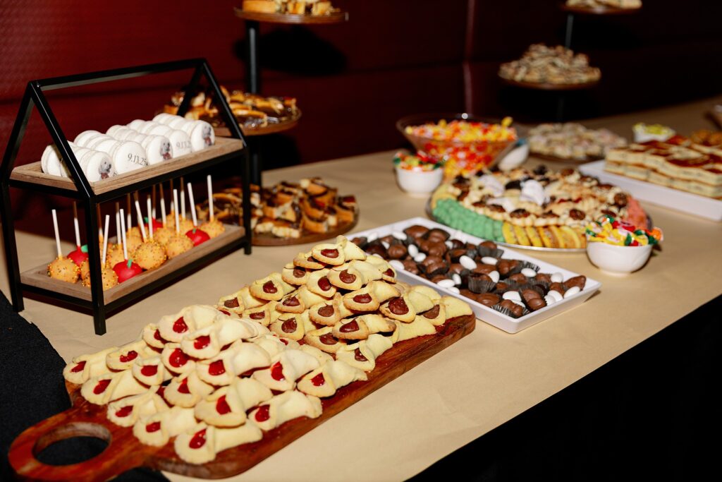 Of course, the night wouldn’t be complete without a cookie table that deserves its own spotlight — truly next level. And the sweetest surprise? A custom sheet of tiramisu that read “Congratulations Ally & Sal.” Perfection.