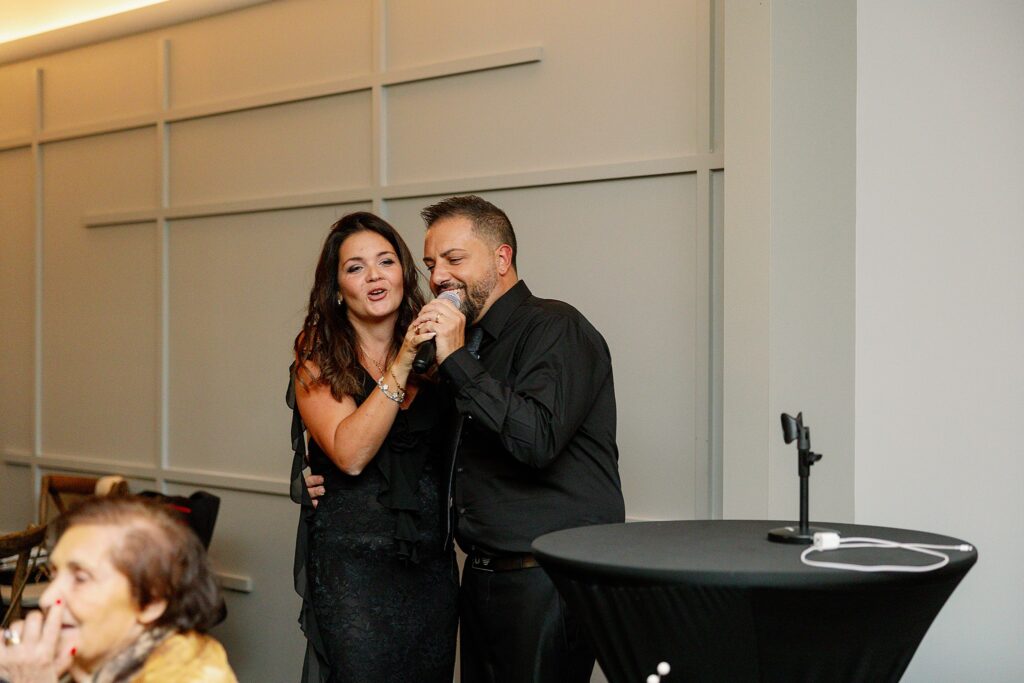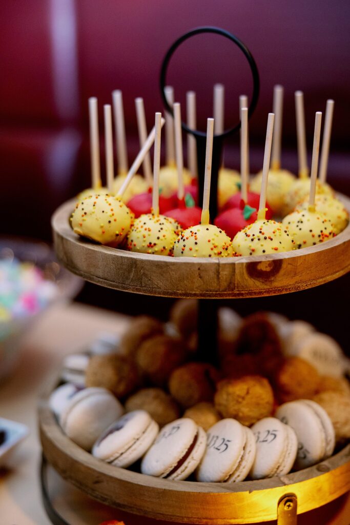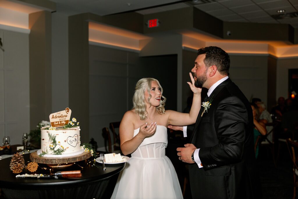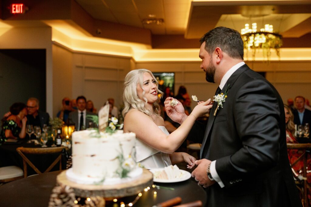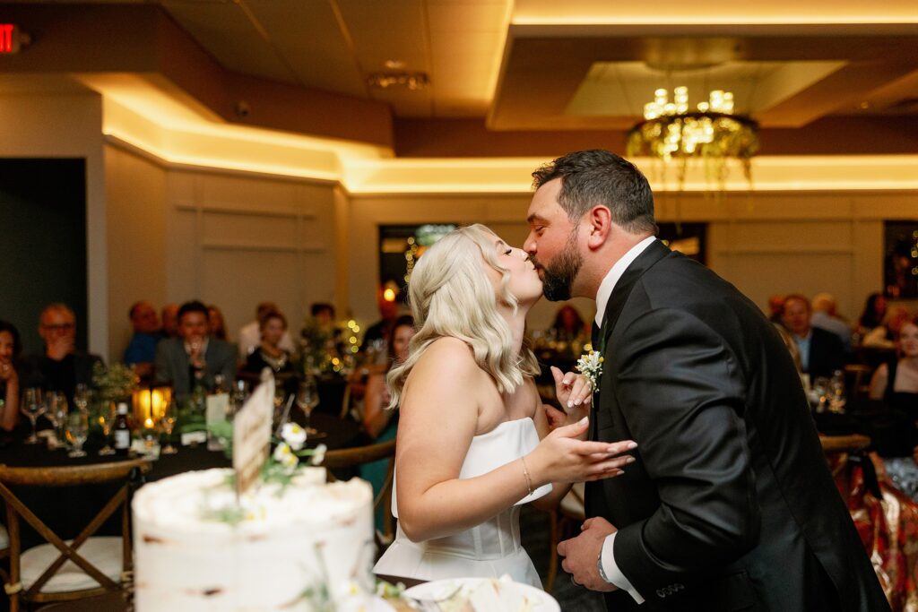 During dinner, a guest serenaded Ally and Sal in Italian, filling the room with so much love it practically shimmered. Then came heartfelt speeches, teary parent dances (yes, I teared up too), and an adorable cake-cutting moment featuring icing on both their noses! Their cake, crafted by Whipped by Aubrey, was as delicious as it was beautiful.