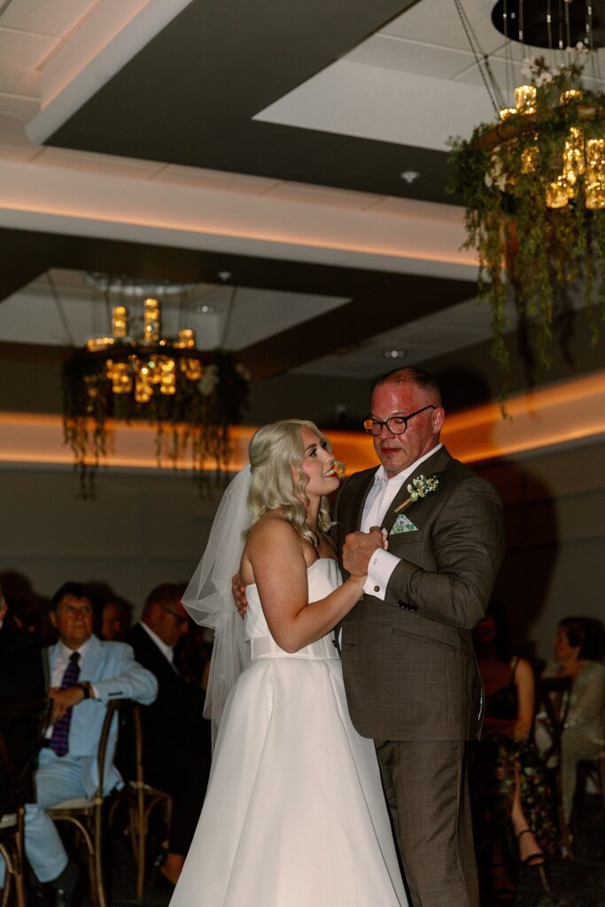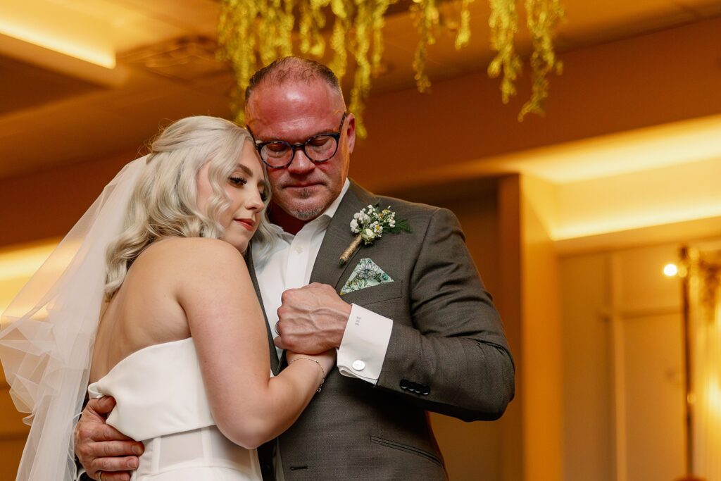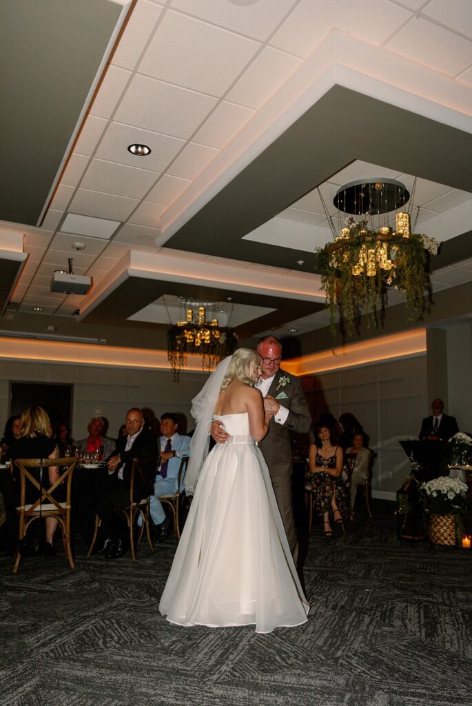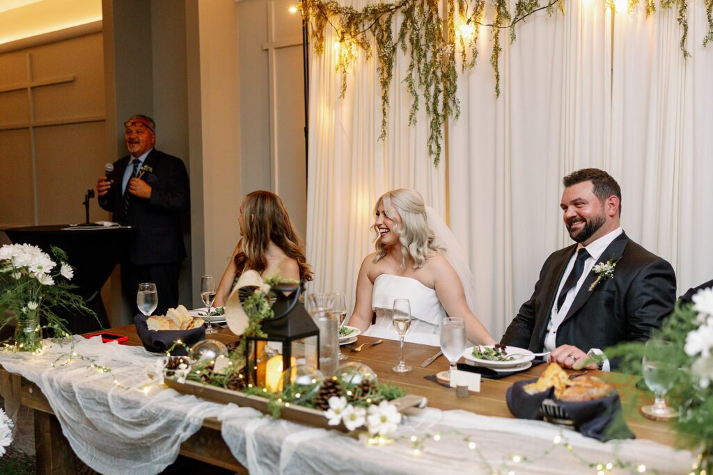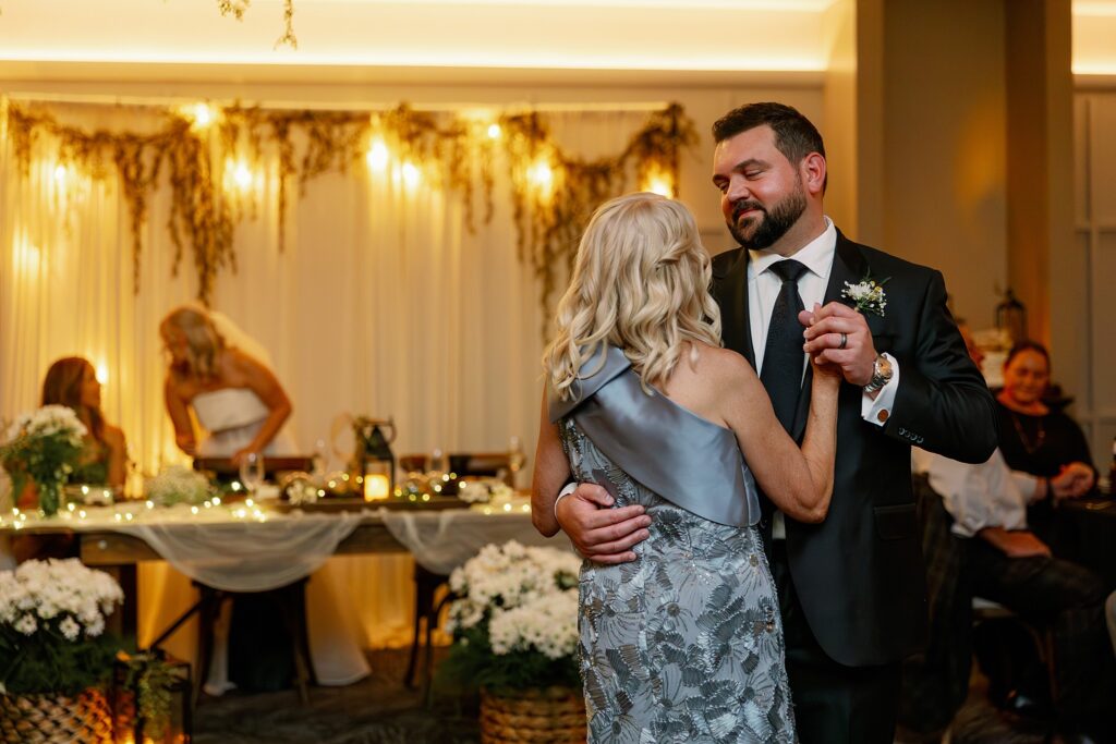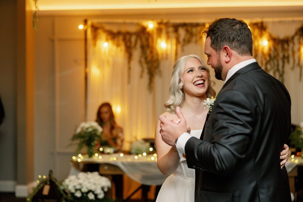 During dinner, a guest serenaded Ally and Sal in Italian, filling the room with so much love it practically shimmered. Then came heartfelt speeches, teary parent dances (yes, I teared up too), and an adorable cake-cutting moment featuring icing on both their noses! Their cake, crafted by Whipped by Aubrey, was as delicious as it was beautiful.